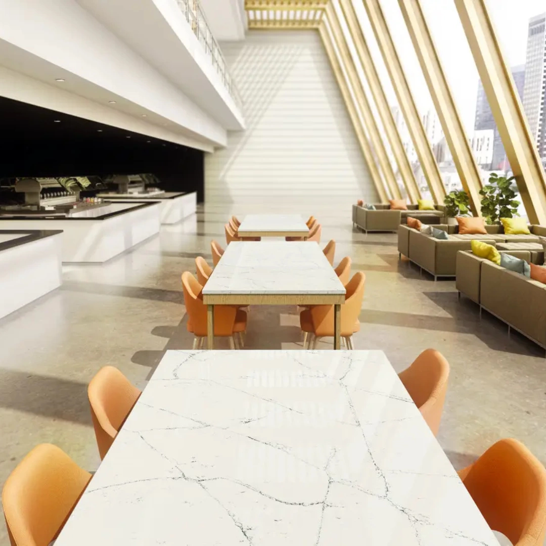 Resembling winter fields divided by fences, Archdale features a serene white backdrop with slender, straight, and curved veins that interconnect to form abstract patterns, complemented by subtle, fine-grain capillaries.